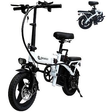 Это компактный складной электровелосипед Максимальная скорость: до 30-40 км/ч. Запас хода: до 35-60км на одном заряде. Особенности: съемная батарея, дисковые тормоза, передняя фара и заднее сидень...