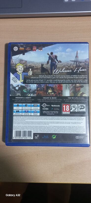 - На обороте указаны ключевые возможности: свобода исследования огромного мира, сбор ресурсов и постройка баз, развитие персонажа по системе S.P.E.C.I.A.L.
