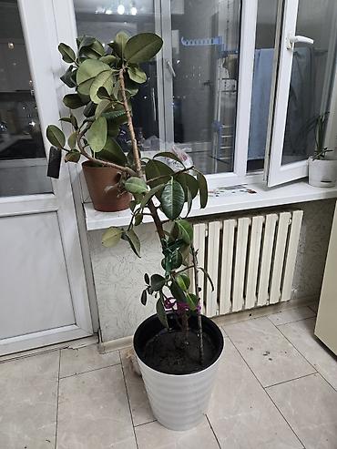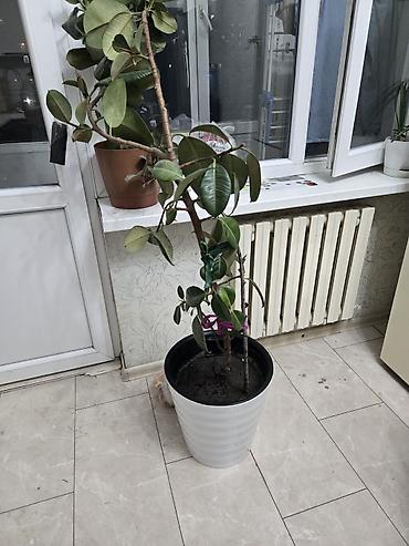 Фикус эластика (каучуконосный) в большом напольном кашпо.