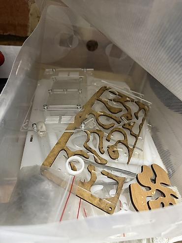 - Комплектующие и аксессуары: акриловые панели, деревянные панели-лабиринты, силиконовые/тефлоновые кольца, винты и стойки, пипетка, пробирка, пинцет, мелкая фракция наполнителя для арены, заглушки и соединительные элементы.