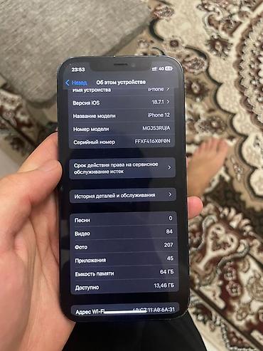 IPhone 13, черный, 128 ГБ. Характеристики и детали по снимкам экрана: - Модель: iPhone 13 (номер модели MLNW3RK/A). - Память: 128 ГБ, доступно ~112,45 ГБ. - iOS: 18.2. - Серийный номер виден на ск...