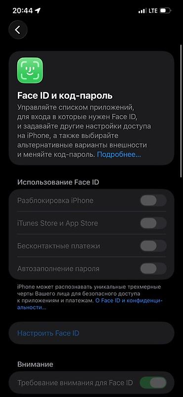 - Память устройства заполнена минимально: доступно ~214,92 ГБ