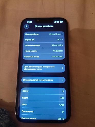 - Раздел «Об этом устройстве»: iPhone 13 Pro, 256 ГБ, серийный номер отображается
