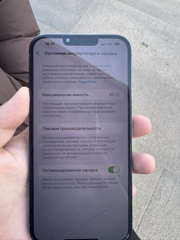 - Состояние аккумулятора по данным iOS: максимальная ёмкость 80%, оптимизированная зарядка включена
