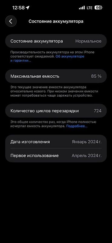 - Количество циклов перезарядки: 724.