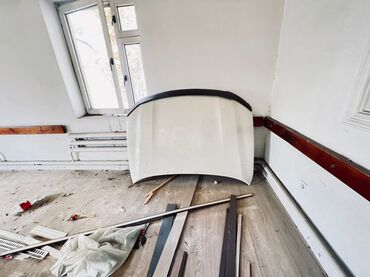 Капот автомобиля, металлический, белого цвета.