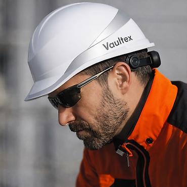 Прочная защитная каска для строительных и производственных работ. Легкая, удобная и с регулируемым размером.