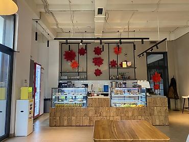 - Барная зона с двумя холодильными витринами, профессиональная эспрессо-машина.