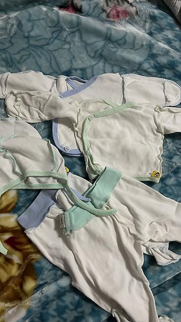 Пакет вещей для новорожденного до 6 месяцев. Б/у. Полотенце с уголком. Три пеленки. Пояс от колик на живот. Кофточка. Шапочка. Два боди. Три слипа. За всё 1000 сом.