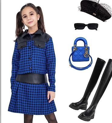 Состояние отличное как новое, теплое платье с жакетом Детский комплект из твида в клетку (черно-белый) - Состав: жакет на пуговицах + платье с расклешенной юбкой. - Узор: контрастная черно-белая...