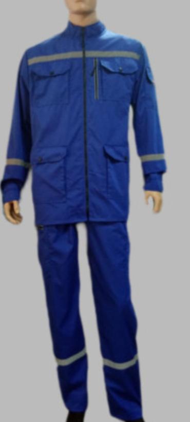 - Цвет: насыщенный синий с контрастными светоотражающими полосами по груди, спине, рукавам и по низу брюк.