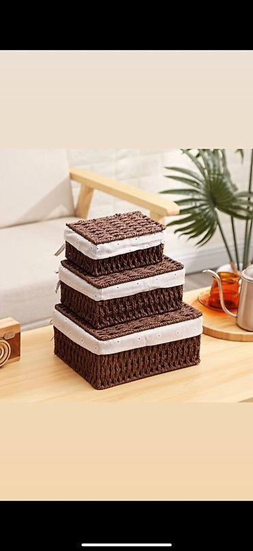 2) Плетеные коробки с крышками (коричневые)