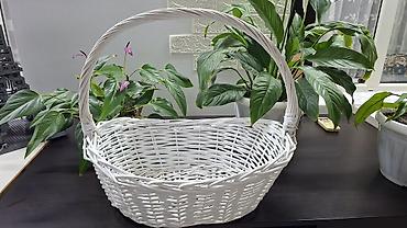 1) Белая плетёная корзина с высокой ручкой: размер 50×30 высота 50см