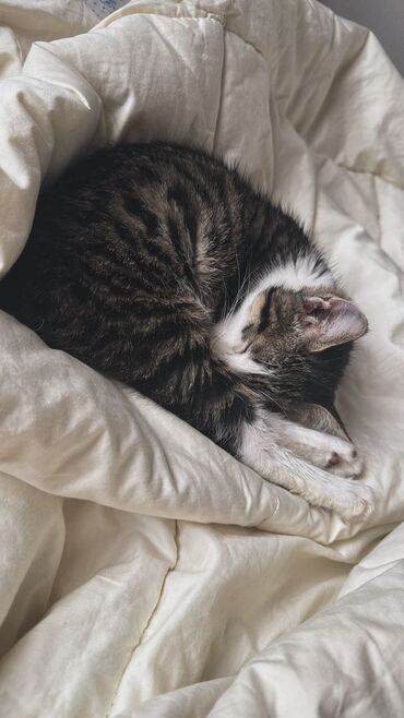 Американский кёрл, 3 месяца, Мальчик, Белый, Приучена к лотку