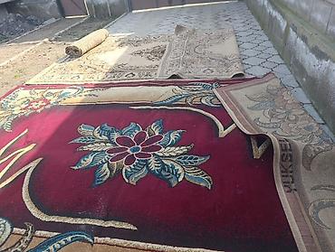 Продаю ковры, разных размеров. Всего их 5 шт. Размеры 2*3, 4*2, дорожка 5метров, 2*2, 2*1,5. По договорной цене , все отдам за 9000сом - Цветовая гамма: бежево-коричневая с бордюром терракотового ...
