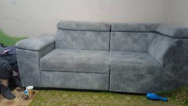 - Обивка: износостойкая ткань серого цвета с легким велюровым/замшевым эффектом, приятная на ощупь, визуально скрывает следы эксплуатации.