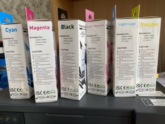 Краска для принтера Epson 103, 003, 101, 001 большой набор чернил из 4-х цветов по 70 мл., в котором 2 флакона черного цвета, а остальные пурпурный, голубой, желтый. Комплект краски эпсон подходит ...