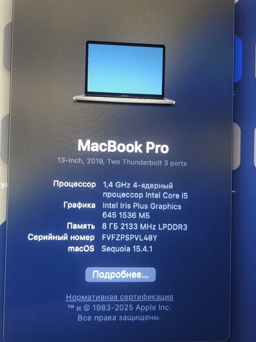 Macbook Pro 15 Retina 2018/2019 32гб - Процессор: Intel Core i7 - Оперативная память: 32gb - Накопитель: SSD 256gb - Экран 15.4 дюймов 2880x1800 Retina - Количество циклов: 63 - Состояние хороше...