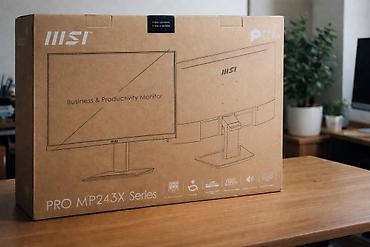 В комплекте: монитор MSI PRO MP243X, подставка (набор сборки), кабели (согласно комплектации производителя) — изображено на коробке.