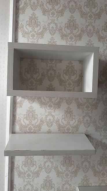 Настенные полки и открытая ниша из ЛДСП, цвет – светлый дуб/серый ясень с текстурой дерева.