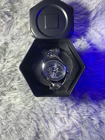 Наручные часы Nike Triax Chronograph. Эта модель отличается характерным асимметричным футуристическим дизайном в стиле Y2K с изогнутым стальным корпусом, который повторяет форму запястья для более комфортной посадки.