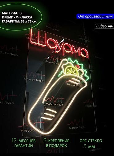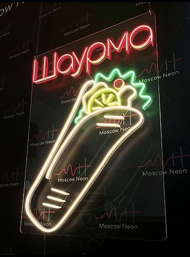 Неоновая вывеска “Шаурма” Характеристики: - Габариты: 55×75 см -