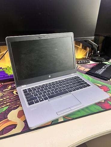 Компактный ноутбук HP EliteBook с металлическим корпусом и наклейками на крышке. Клавиатура островного типа с тачпадом и физическими кнопками, веб‑камера. Экран около 14". На корпусе присутствуют порты для подключения к фирменной док‑станции.