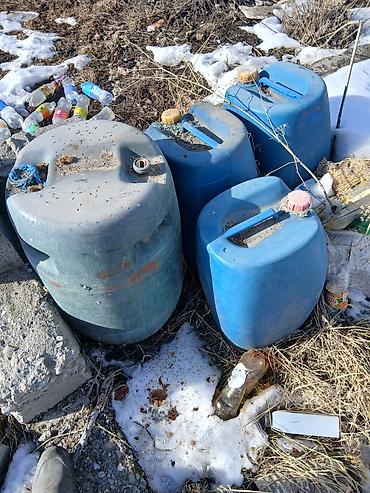 Пластиковые канистры синего цвета, прямоугольные, с ручкой и завинчивающейся крышкой. Объём ориентировочно 20–25 л каждая. Подходят для воды, технических жидкостей, ГСМ (согласно маркировке на таре...