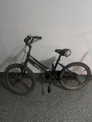 Детский/подростковый велосипед с колёсами около 20". Особенности: - Стальная рама классической геометрии. - Прямая вилка. - Руль BMX‑типа с грипсами. - Одна звезда спереди, задняя трещотка, цепной...