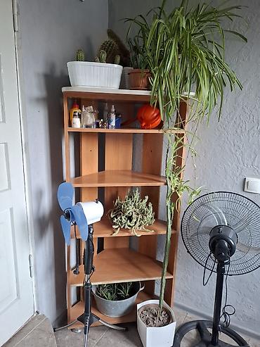 Компактный открытый стеллаж из ЛДСП в цвете «бук». Примерные габариты (по фото): ширина около 80–90 см, высота около 60 см, глубина около 25–30 см.