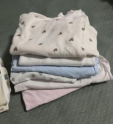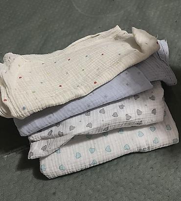 Пеленки хб тонкие мягкие по 200 сом и фланелевые по 450 сом,уголок ажурный 350 сом, накидка на коляску голубая 2 штуки 500 сом новая, ткань разная , отрезы , полотенца новые лицевые банные , детс...