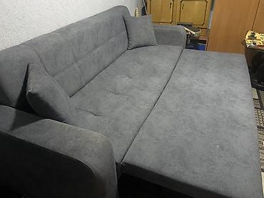 Раскладной диван-кровать, серый - Тип: прямой диван с механизмом трансформации «книжка/клик-клак» (спинка опускается, образуя ровное спальное место) - Размеры (оценочно по фото): ширина около 200–...