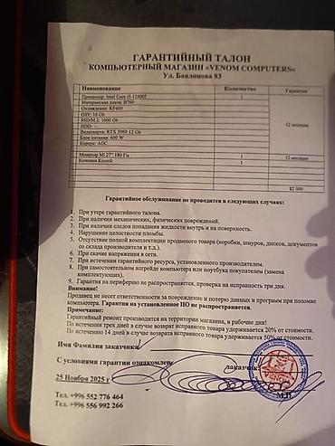 В комплекте на фото: системный блок, монитор 27" 180 Гц, клавиатура и подсвечиваемая мышь. Гарантийный талон прилагается (указан срок 12 месяцев на основные компоненты и монитор).