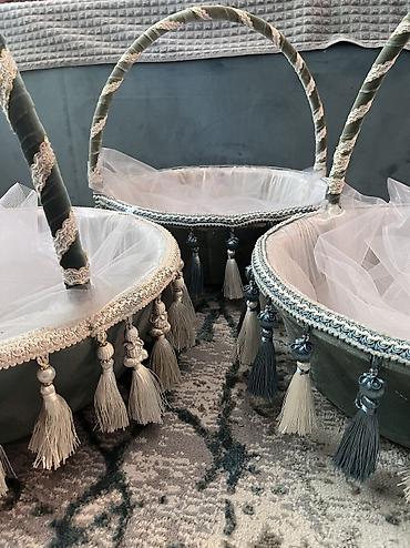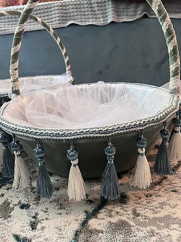 Корзинка выполнена в нежных пастельных оттенках с декоративными кисточками и аккуратной отделкой. Внутри мягкая тканевая подкладка.
