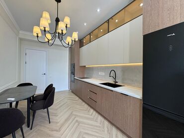 • Премиальный ремонт: кухня МДФ, ламинат «английская ёлочка», крашеные двери, стеклянные перегородки.