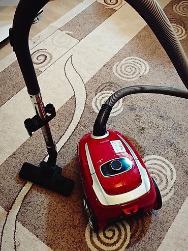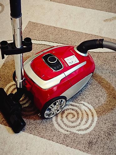 Цвет: красный с серебристыми вставками. Подходит для уборки ковров и твердых покрытий, плавная настройка тяги для деликатных поверхностей и штор.