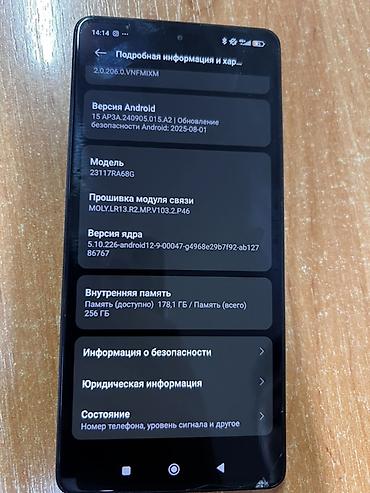 Смартфон Redmi (модель 23117RA68G) на базе Xiaomi HyperOS 2.0.206.0 и Android 15.