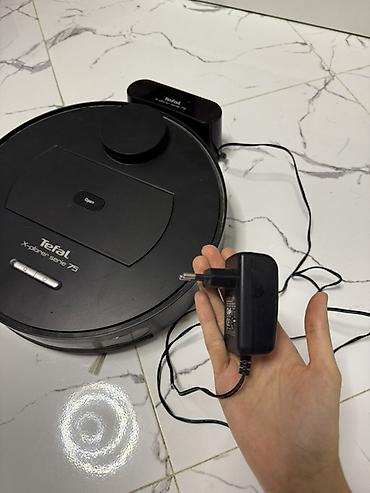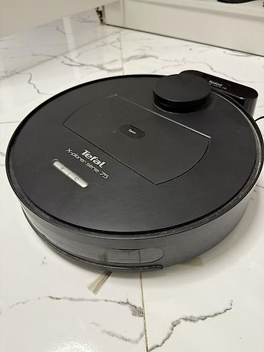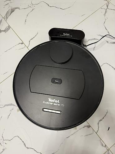 Комплектация на фото: робот-пылесос Tefal X-plorer Serie 75, док-станция, сетевой адаптер. Цвет — черный.
