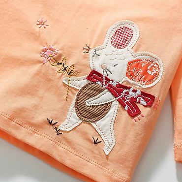 - Декор: объёмные аппликации мышек с вышивкой и бантиками, мелкие цветочки