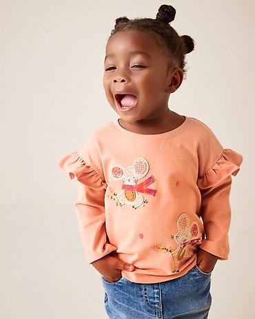 Идеально сочетается с джинсами, юбками и леггинсами. Яркий и нежный лонгслив с милыми персонажами для уютных повседневных образов. Бренд: Little Maven.