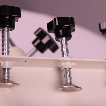 - Конструкция из металла с продольной балкой и 4 регулируемыми прижимными винтами для точной фиксации заготовки/рамки.