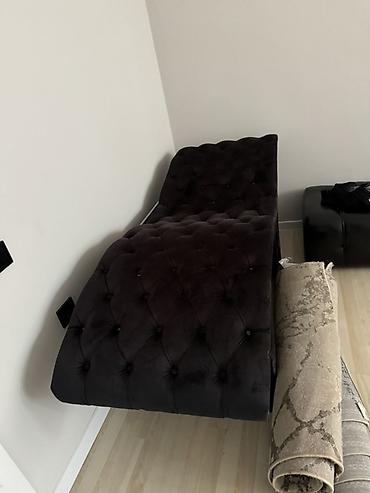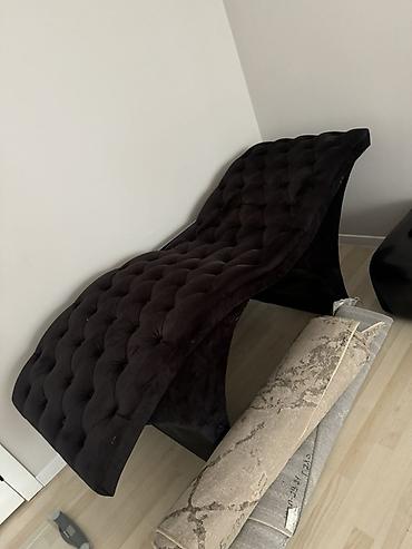 Дизайнерская мягкая кушетка/шезлонг в современном стиле. - Обивка: бархатная ткань глубокого чёрного цвета, приятная на ощупь. - Каркас: изогнутая монолитная форма с опорами-арками для устойчивост...