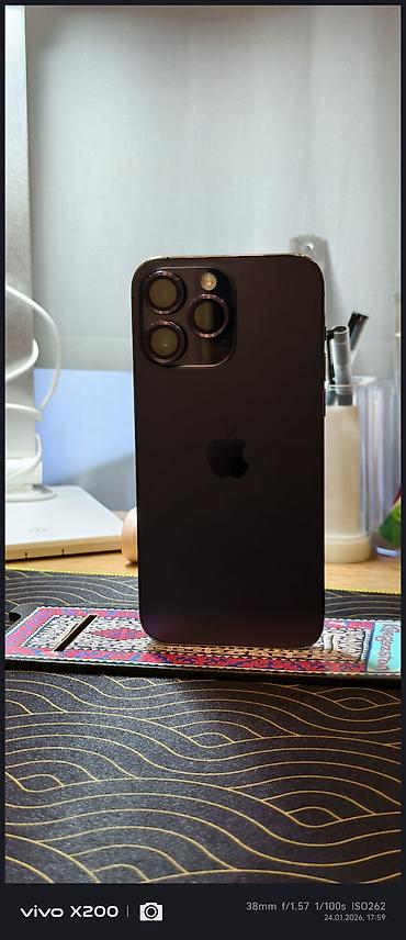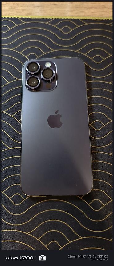 IPhone 14 Pro, Б/у, 256 ГБ, Deep Purple, Защитное стекло, Чехол, Коробка, 80 %