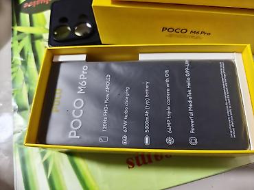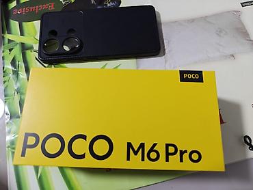 - В комплекте: фирменная коробка POCO M6 Pro, защитный чехол/бампер под модуль камер, кабель и документы (видны на фото).