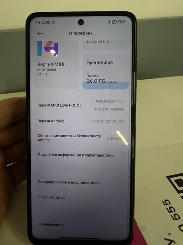 POCO X3 Pro, версия MIUI Global 14.0.3 (для POCO), Android 13. Память: 128 ГБ (занято около 26 ГБ). Цвет корпуса – золотистый/бронзовый с фирменной полосой POCO.