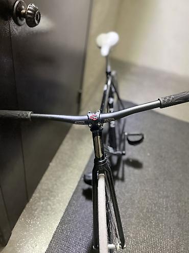 Спортивный трек/фикс-байк Me?ll? (надпись на раме) с жесткой карбоновой/алюминиевой аэро-рамой и прямой карбоновой вилкой. Формат — singlespeed/фикс: одна звезда спереди, один cog сзади, без перекл...