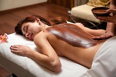 - Обёртывания для тела: шоколадное и растительное. Питает, увлажняет и тонизирует кожу, приятный аромат и эффект мягкости.