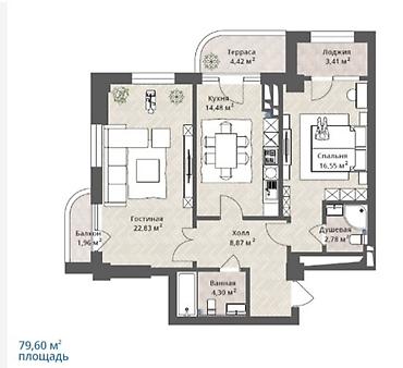 1 комната, 43 м², Элитка, 4 этаж, Готовая ПСО (под самоотделку)