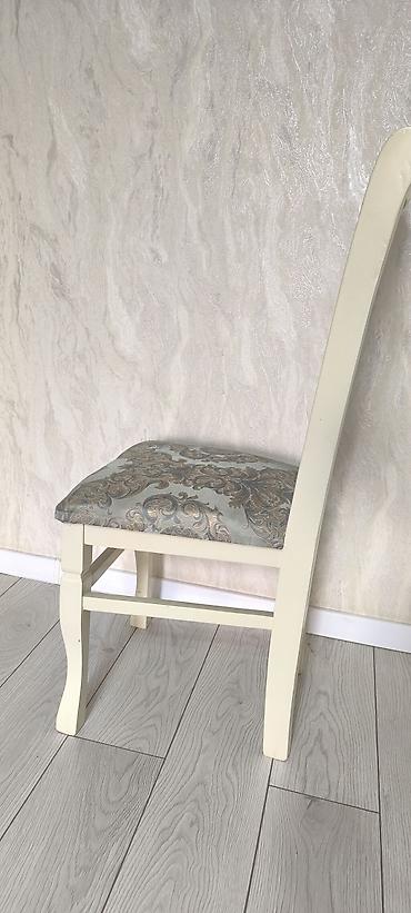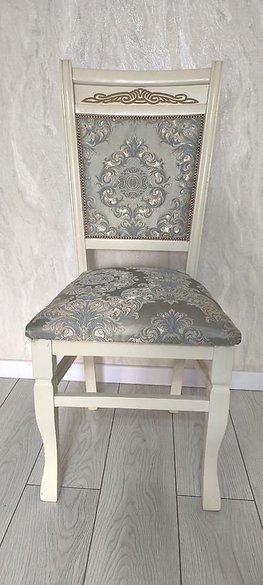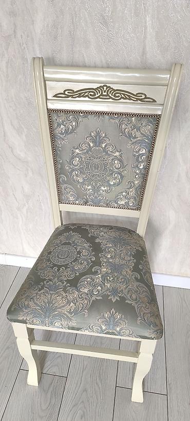 - Каркас: массив дерева, окраска в молочно-слоновый цвет с глянцевым эффектом. Фигурные передние ножки, перекладины-усилители по периметру.