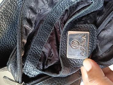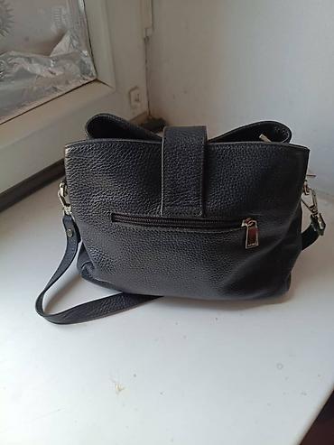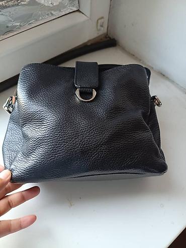 Сумка через плечо из чёрной бычьей кожи (или экокожи) с металлической